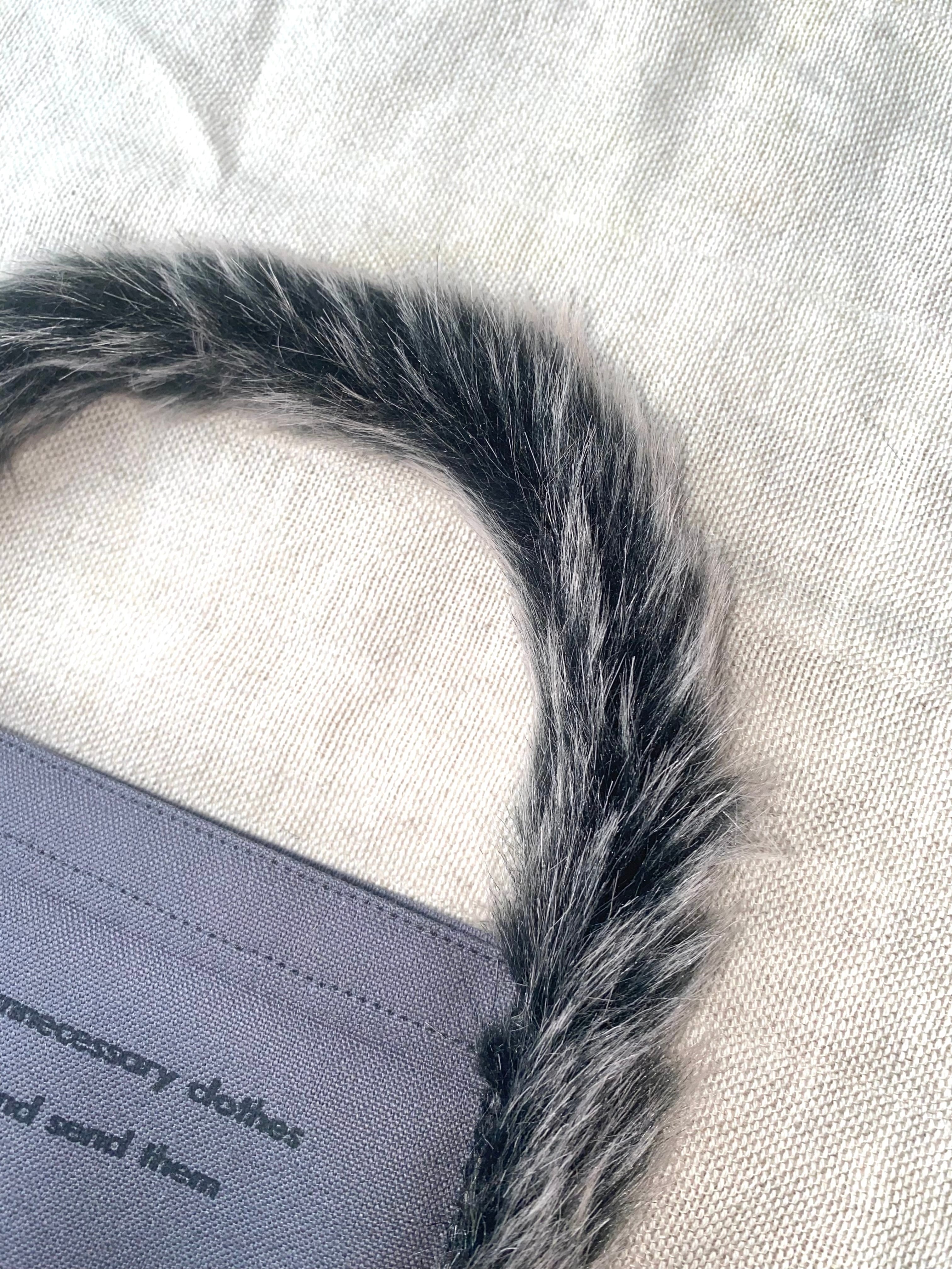 ・素材:生地/コットン100% フェイクファーテープ/アクリル70% ポリエステル30% 持ち手ワイヤー/塩化ビニル・アルミ